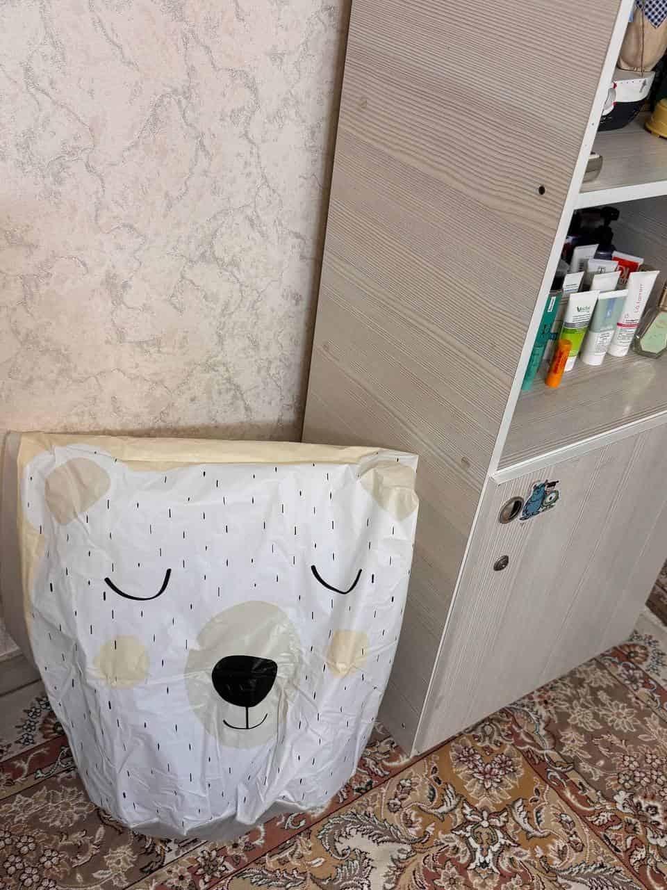 خیلی جادار و خوبه، من دو تا پتو داخلش جا دادم و قشنگ داخل کمد مرتب شد. طرح خرسش هم بامزه است و جنسش برای جلوگیری از خاک گرفتن عالیه.