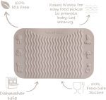 - مناسب برای سینیهای صندلی غذاخوری: این مت غذا به راحتی روی سینیهای صندلی کودک جای میگیرد و میتواند مستقیماً روی میز استفاده شود.