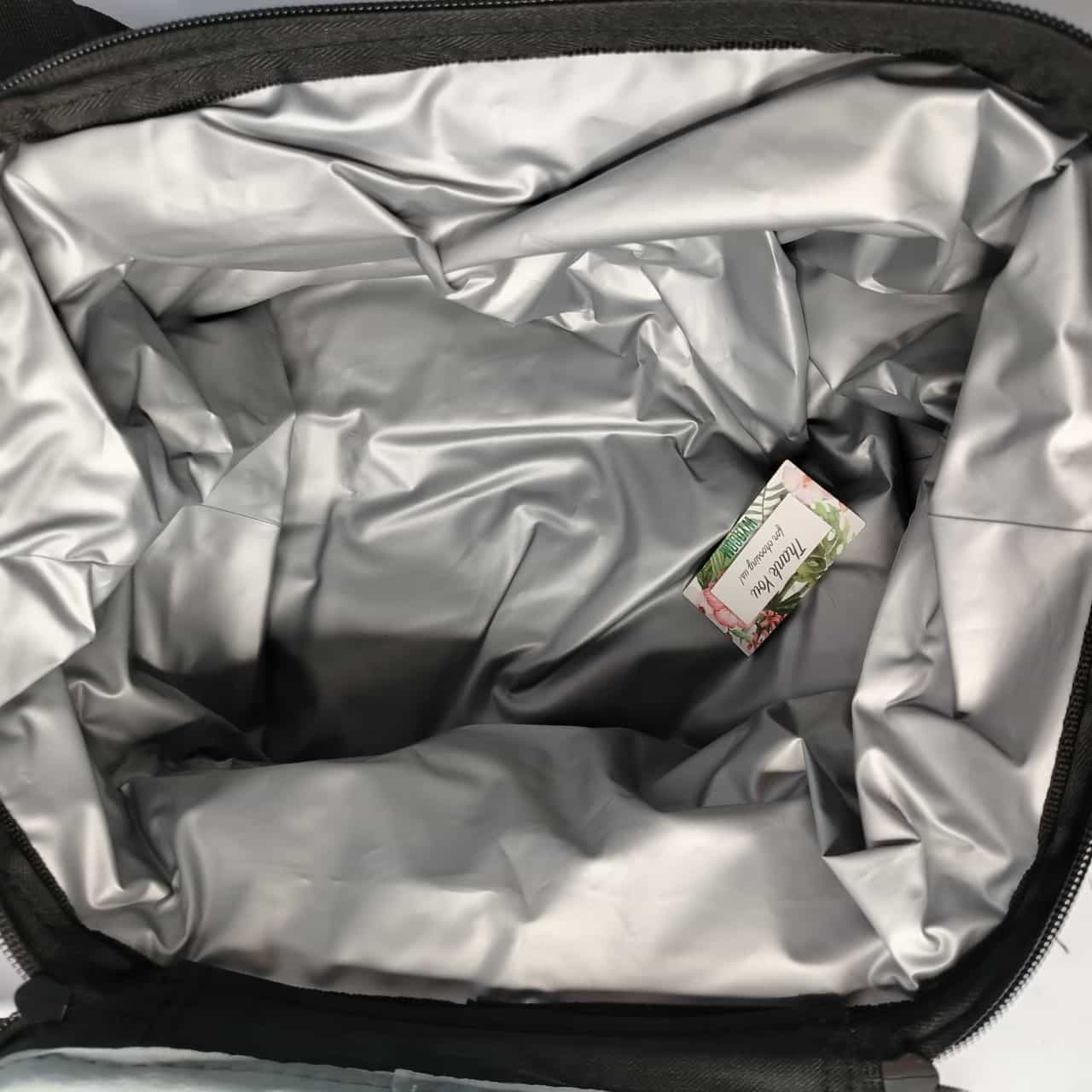 •لایه داخلی PEVA ضد آب: لایه داخلی بگ از مواد PEVA ساخته شده است که ضد آب بوده و از نفوذ رطوبت و چربی به بیرون جلوگیری میکند، این ویژگی باعث میشود تمیز نگهداشتن آن بسیار آسان باشد.