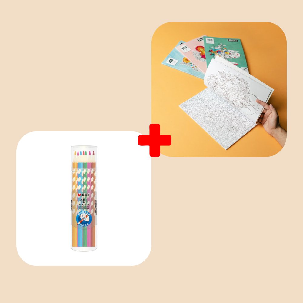 یه پک کامل برای ریلکس کردن و سرگرمی خلاقانه داری؛ کتاب ضد استرس همراه با مدادهای با کیفیت، تجربه رنگآمیزی لذتبخش و آرامشبخش رو فراهم میکنه و با خرید پک هزینه کمتری پرداخت میکنی.
