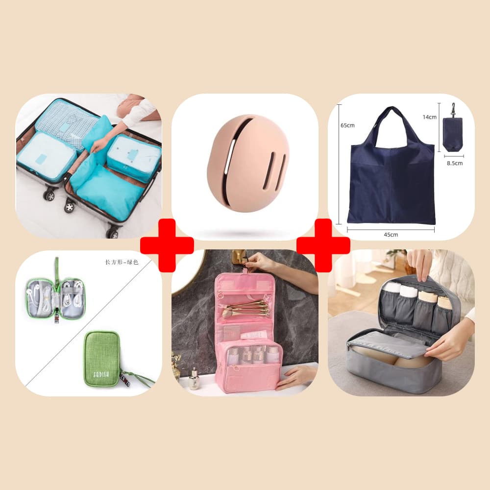 یه ست کامل صورتی برای سفر داری که همه وسایل ضروری رو پوشش میده: چمدان، کیف لباس زیر، کیف آرایشی، کیف وسایل الکترونیک و لوازم جانبی. با خرید پک، همه این موارد هماهنگ و با هزینه کمتر در دسترست هست.