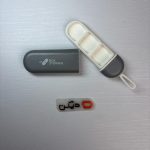 این باکس داروی منحصربهفرد با طراحی شبیه به فلشمموری، انتخابی عالی برای کسانی است که میخواهند داروهای خود را به صورت محرمانه و شیک حمل کنند. دارای ۳ محفظه داخلی برای تفکیک داروها، مکانیزم بازشدن کشویی و بند سیلیکونی برای آویز کردن است. ابعاد کوچک آن باعث میشود به راحتی در جیب یا کوچکترین کیفها جای گیرد.