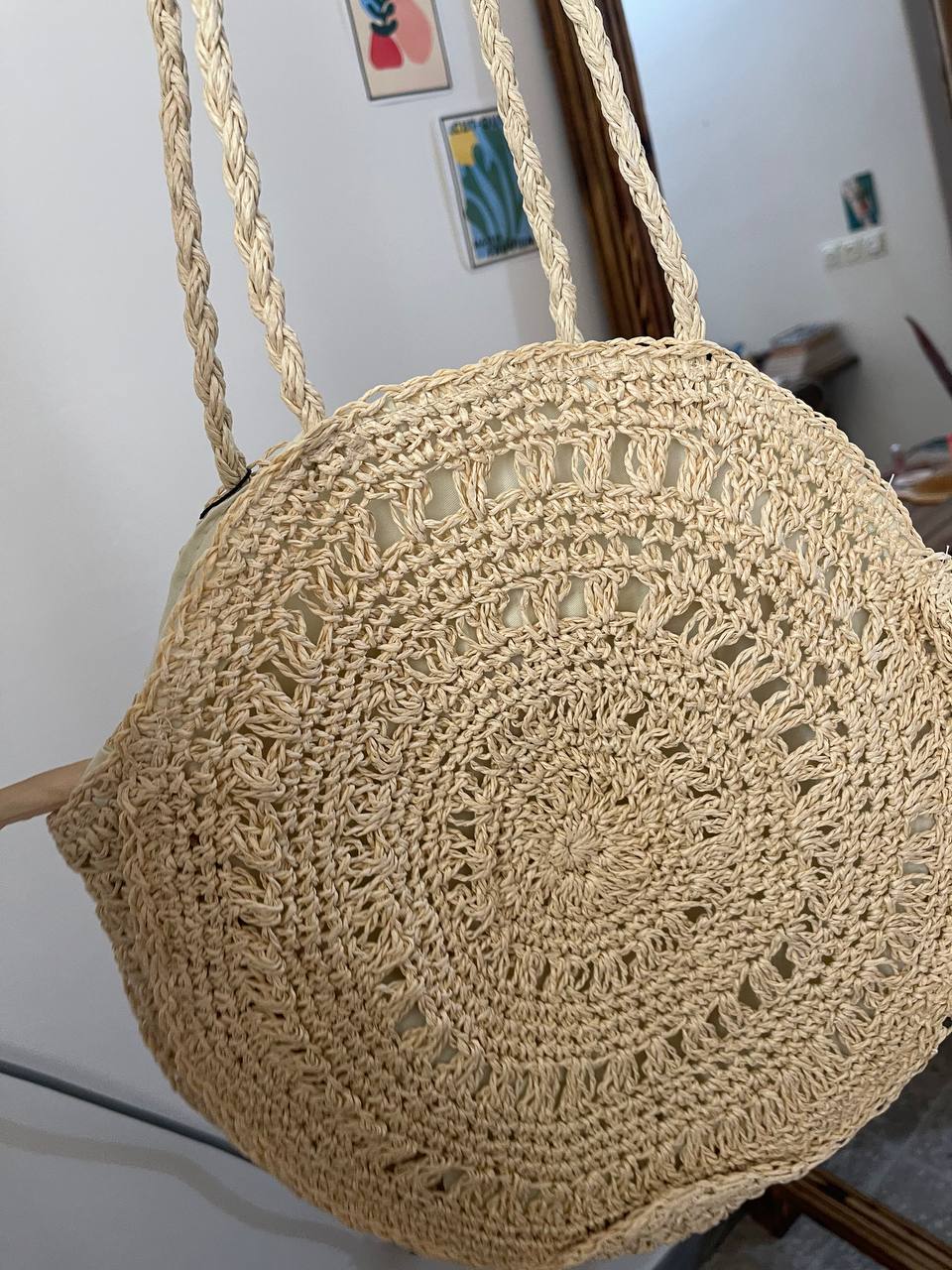 جنس حصیریش بافته شده و محکمه، واقعاً اورجینال به نظر میاد و برای استایل های تابستونی و لب دریا عالیه. آستر داخلی هم داره که خیلی خوبه.