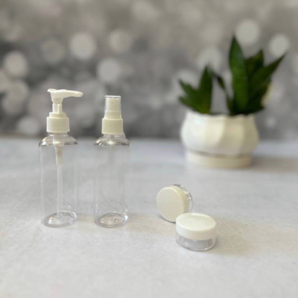 پک مسافرتي اسپري و پمپ و قوطي ۴ تکه