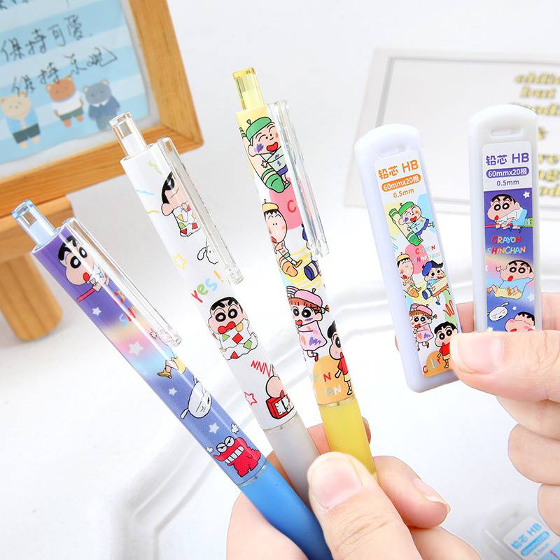 طرح شین چانش واقعا بامزه و خوشگله! عالیه که نوک مداد هم همراهش هست، برای جزوه نوشتن نوکش خیلی خوب و استاندارده.